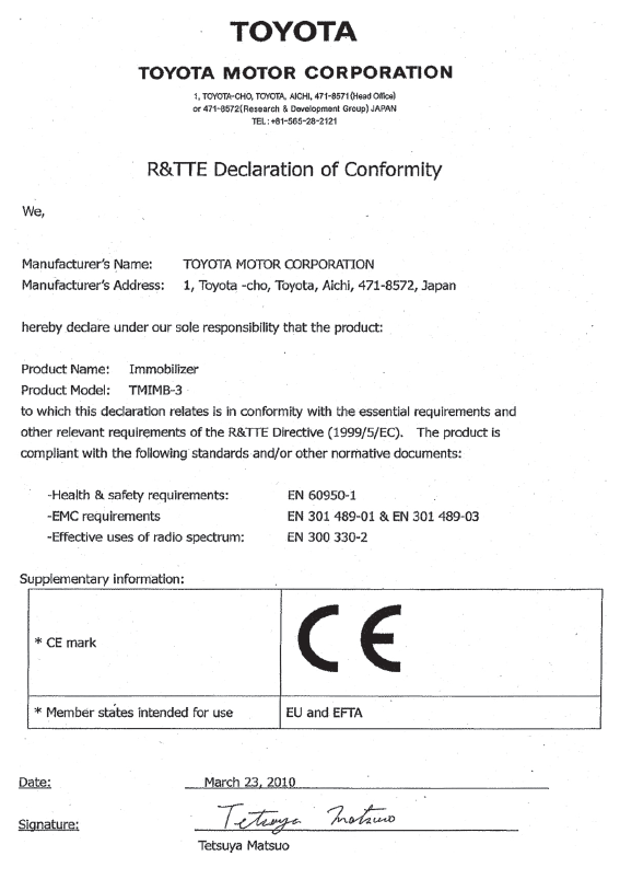 Die Fahrzeugschlüssel enthalten eingebaute Signalgeber, die das Anlassen des Motors verhindern, falls ein Schlüssel nicht zuvor im Bordcomputer des Fahrzeugs registriert wurde.
